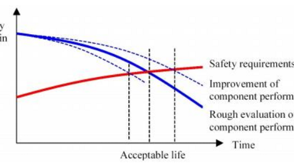 Power plant structures and machinery generally possess substantial safety margins when designed and constructed correctly. However, the available margins for degraded maintenance are often poorly understood. Age-related degradation of components and control systems can affect dynamic properties, mechanical responses, electrical resistance, and failure modes.